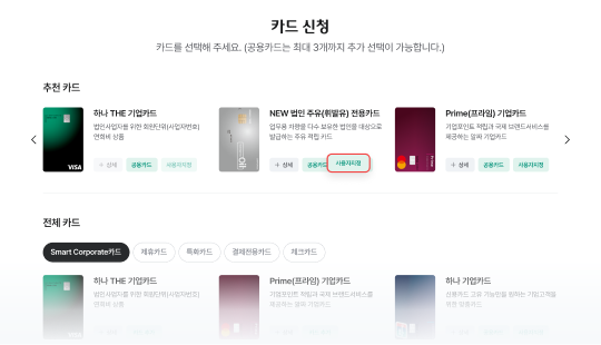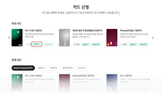 Ä«µå¸¦ ¼±ÅÃÇØ ÁÖ¼¼¿ä. (°ø¿ëÄ«µå´Â ÃÖ´ë 3°³±îÁö Ãß°¡ ¼±ÅÃÀÌ °¡´ÉÇÕ´Ï´Ù.)