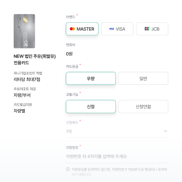 ¾÷¹«¿ë Â÷·®À» ´Ù¼ö º¸À¯ÇÑ ¹ýÀÎÀ» ´ë»óÀ¸·Î ¹ß±ÞÇÏ´Â ÁÖÀ¯ Àû¸³ Ä«µå